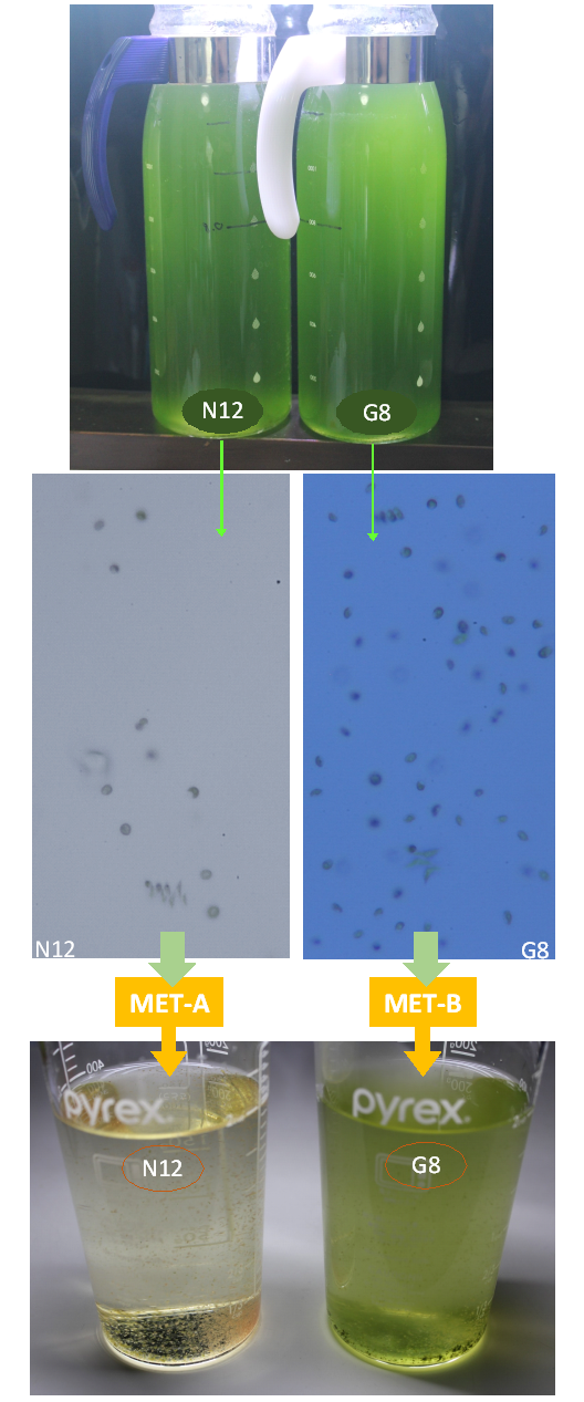 その藻種は、両方ともクロレラが主体で、これにイカダモが混じる構成となっていました。